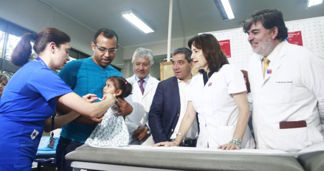 La Ministra de Salud, Carmen Castillo, informó que a partir de hoy todos los lactantes de 18 meses que viven en el país recibirán la vacuna contra el virus de la Hepatitis A. Acompañada del Subsecretario de Salud Pública, Jaime Burrows, y la representante de OPS/OMS en Chile, Paloma Cuchi, la Secretaria de Estado destacó que se estima que la medida beneficiará a un universo aproximado de 186 mil niños y niñas.
