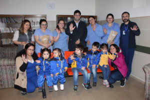 Una especial visita recibió funcionarios y pacientes del Servicio de Diálisis del Hospital Dr. Augusto Essmann Burgos, los párvulos del Jardín Infantil Barquito de Papel compartieron con enfermeros, TENS, auxiliares y usuarios del servicio en que 40 natalinos acceden a sus hemodiálisis.
