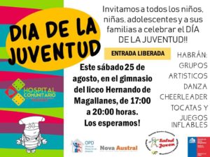 Una invitación abierta a la comunidad fueguina y porvenireña – en espacial a sus jóvenes – está efectuando el Programa de Salud Integral de adolescentes y jóvenes del Hospital Comunitario Dr. Marco Chamorro Iglesias de Porvenir, junto a diversas Instituciones del ámbito público y privado, mañana sábado 25 con motivo de la conmemoración del Día Internacional de la Juventud.