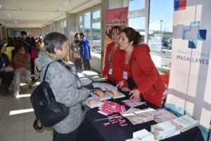 Fue así como equipos de salud y voluntarios de las agrupaciones “A Favor del Viento”, Agrupación de Pacientes Oncológicos de Magallanes y la filial Punta Arenas de la Corporación Nacional del Cáncer (CONAC), entregaron información preventiva en el CAE del Hospital Clínico de Magallanes. En la actividad fueron apoyadas por la SEREMI de Salud, Mariela Rojas, la SEREMI de Gobierno, Alejandra Muñoz, SEREMI de Desarrollo Social, Liz Casanueva, SEREMI del Deporte, Odette Callahan, la Directora (S) del Servicio de Salud Magallanes, Karin Uribe, la Subdirectora Médica del Servicio de Salud, Dra. María Isabel Iduya y la Agente Regional de la Superintendencia de Salud, Nelly Jeldres.