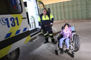 Hoy, con ocho años de edad, Martina se va de alta con apoyo kinésico, equipo de visita domiciliaria, apoyo de equipamiento y profesional importante además de la capacitación que se le hizo a la familia que, a contar de hoy, estará al cuidado permanente de su salud.
