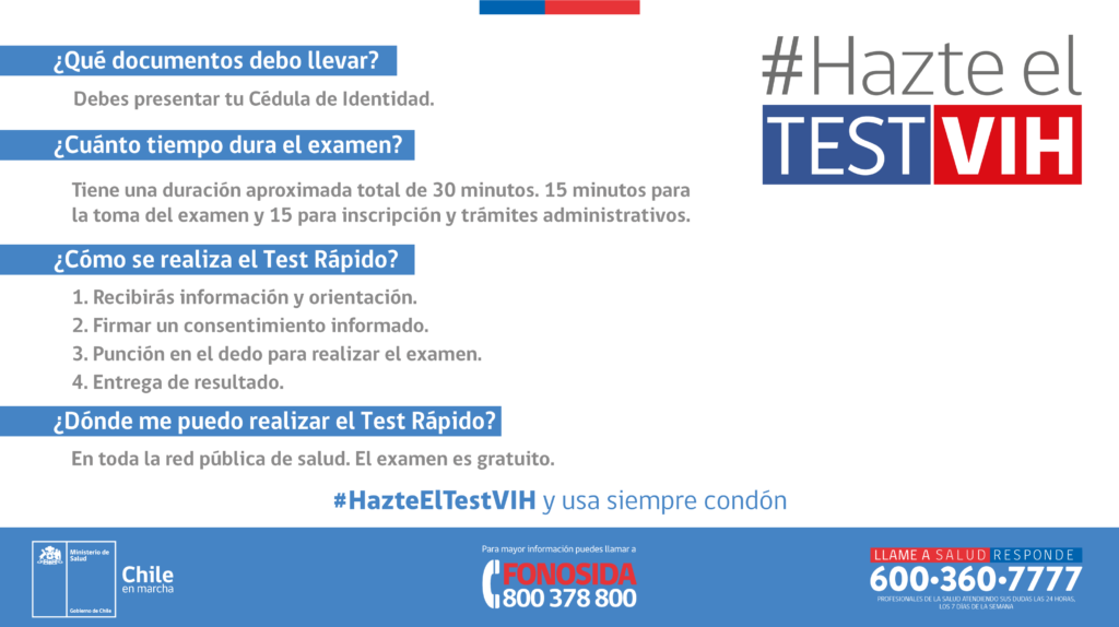 Una de las medidas más importantes es aumentar la pesquisa de personas que viven con VIH y no lo saben. Para ello se han coordinado acciones con las seremis de salud de cada región, junto con el rol fundamental de la sociedad civil, para la aplicación del test rápido a la población prioritaria, además de jóvenes entre 18 y 29 años en universidades u otros establecimientos educacionales, bajo la campaña #HazteElTestVIH.