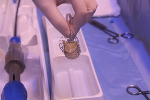 El implante con válvula aórtica artificial vía percutánea es una técnica que favorece a pacientes cardíacos con una hospitalización menor a una semana. Esta intervención se realiza desde una arteria periférica del cuerpo, sin abrir el tórax ni tampoco el corazón, utiliza un gran avance tecnológico que permite introducir a través de un catéter una válvula artificial (con tejido biológico y soporte de fibra) hasta la posición de la válvula aórtica e implantarla desde el exterior.