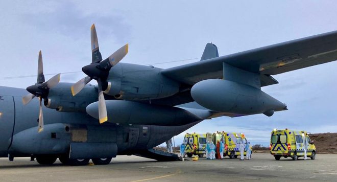 La aeronave C-130 Hércules, puede transportar hasta cuatro pacientes críticos simultáneamente, según lo informado por el jefe de la Escuadrilla de Redespliegue Sanitario Aéreotransportable Modular (ERSAM) de la FACH, Comandante de Escuadrilla (S) Gonzalo Suárez.