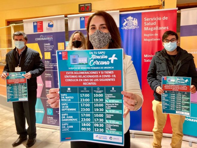 La iniciativa, denominada “En tu SAPU Atención + Cerca”, tiene por objetivo Incentivar a la comunidad usuaria a asistir a estos dispositivos. “Actualmente en la Región de Magallanes existen 4 Servicio de Atención Primaria de Urgencia SAPU, 3 en la ciudad de Punta Arenas, dependientes de los CESFAM Dr. Mateo Bencur, Dr. Juan Damianovic y 18 de Septiembre y, uno en Puerto Natales, dependiente del CESFAM Dr. Juan Lozic”, indicó la subdirectora de Atención Primaria del Servicio de Salud Magallanes, Klga. Verónica Yáñez.