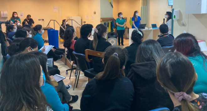 La capacitación, organizada por el CR de Rehabilitación y la Dra. Paola Balcázar, geriatra del establecimiento, consideró la participación de médicos, enfermeras, terapeutas ocupacionales, kinesiólogos, fonoaudiólogos y TENS.