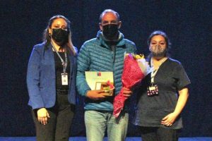 La ceremonia, consideró también el reconocimiento póstumo a Erica Vera Alvarado (Q.E.P.D), quién se desempeñó por 8 años en el CESFAM Mateo Bencur, siendo recordada por sus colegas como una persona muy cercana, cariñosa con los adultos mayores y compasivo corazón, cuyo entusiasmo y espontaneidad fueron el sello que dejó en cada uno de sus pares; el homenaje fue recibido por su viudo, Claudio Arenas.